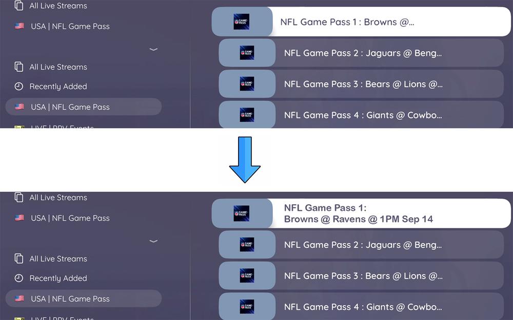 I'm suggesting using two lines in the guide preview. Most of the time, especially for live events, the description goes off screen and you can't read the whole description. Two lines were help see the full description for each event.